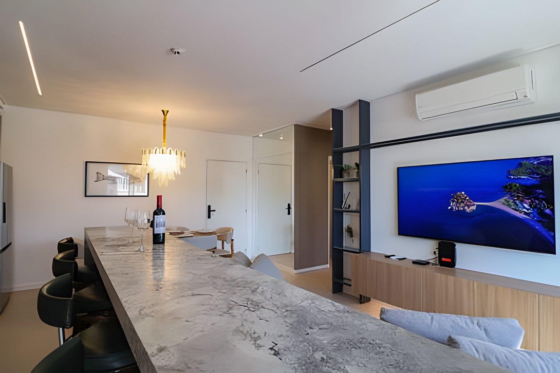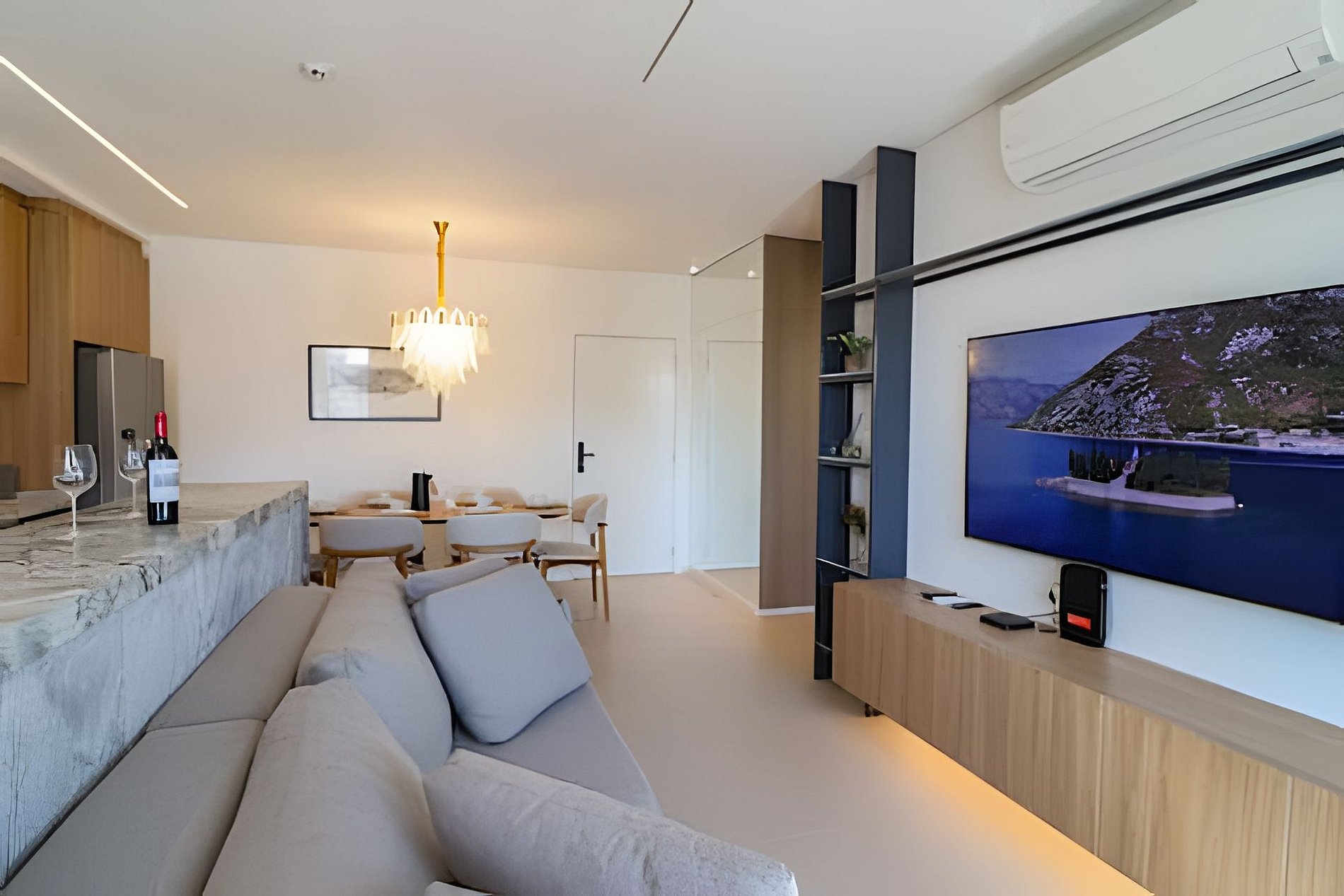 Imagine acordar cercado pelo azul do mar, com uma ilha à sua frente e outra sob seus pés. Este é o refúgio exclusivo no ICONIC, condomínio de alto padrão em frente ao mar, onde luxo e natureza se encontram no ponto mais espetacular de Florianópolis. - Acomoda até 4 adultos + 2 crianças (sem festas, sem visitas – privacidade total). -Jacuzzi privativa com hidromassagem. - Vista do oceano direto da Varanda. -Roupas de cama premium, sensação de hotel cinco estrelas. Este espaço foi pensado para quem busca exclusividade, paz e sofisticação. Um cenário de cinema que só Florianópolis pode oferecer — e agora, pode ser seu por alguns dias. 🔇 Regras de silêncio entre 22h e 7h 🚫 Não são permitidos eventos ou visitantes extras 🎯 Ideal para casais, famílias pequenas ou quem busca uma experiência de luxo com total privacidade 🌟 Destaques do Anúncio: ✅ Jacuzzi privativa com vista para o mar ✅ Localização única: ilha de frente para outra ilha ✅ Apartamento novo (entregue em maio de 2025) ✅ Roupas de cama e banho padrão hotel 5 estrelas ✅ Acomoda até 4 adultos + 2 crianças com conforto ✅ Silêncio e privacidade ✅ Ar-condicionado nos dois quartos (um deles é suíte) ✅ Cozinha equipada com forno elétrico, máquina de lavar louça e utensílios para churrasco ✅ Wi-Fi de alta velocidade ✅ TV de 65" na sala + TVs de 55" em cada quarto ✅ Estacionamento incluso 📌 Importante: O cadastro para check-in será autorizado somente mediante envio dos documentos solicitados com 48 horas de antecedência, conforme exigência do condomínio. Temos parceria com escolinha de surf local, com preços especiais para nossos hóspedes Possibilidade de travessia de lancha para a Ilha do Campeche com guias especializados (serviço terceirizado na praia) Regras e Observações: Apenas as pessoas registradas na reserva terão acesso ao condomínio e ao apartamento. Alterações de hóspedes não são permitidas após o check-in. Lembramos que o Airbnb não é um hotel, então pedimos a gentileza de retirar o lixo e lavar as louças ao final da estadia. O acesso ao apartamento inclui escadas e elevador. Estamos no segundo andar do bloco E. Cada detalhe do nosso apartamento foi pensado para que você tenha uma estadia inesquecível. Chegue com suas malas e aproveite – o resto estará preparado para você! Reserve e viva dias inesquecíveis em uma ilha de frente pra outra ilha. 💙🌊 Nossos hóspedes poderão utilizar as áreas comuns conforme especificado na descrição detalhada acima. O acesso ao condomínio é feito com a identificação de todos os ocupantes na portaria para liberação em seguida. Por isso solicitamos as fotos dos documentos de todos que utilizarão o imóvel. Estaremos sempre que possível a disposição. Fique a vontade para se comunicar conosco por aqui ou pelo telefone. Festas sao extremamente proibidas e multas serão aplicadas além da visita das autoridades locais. Não é permitido receber visitas.