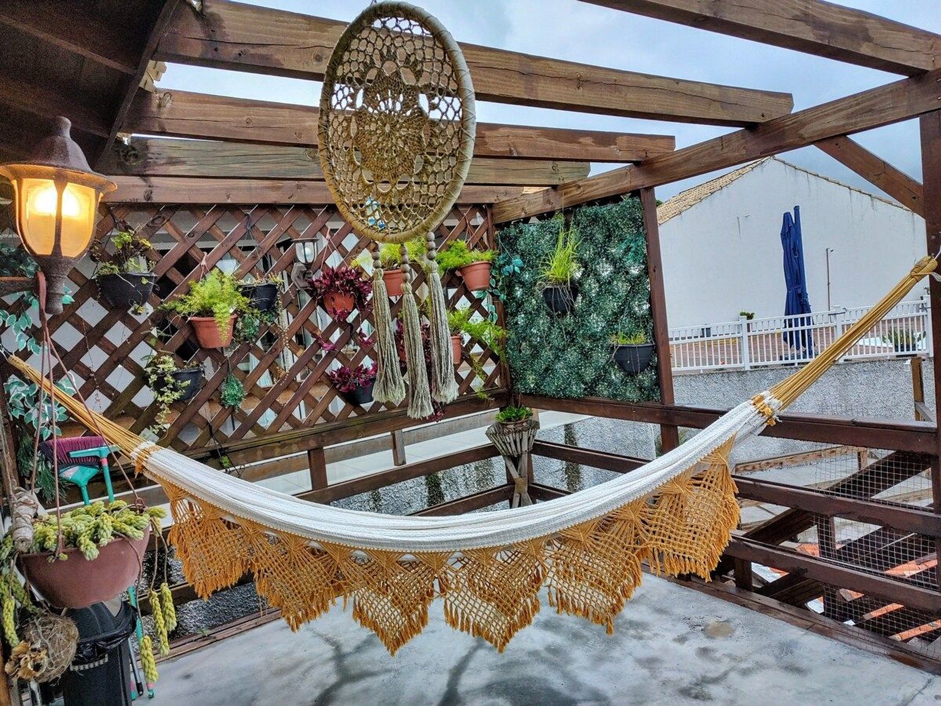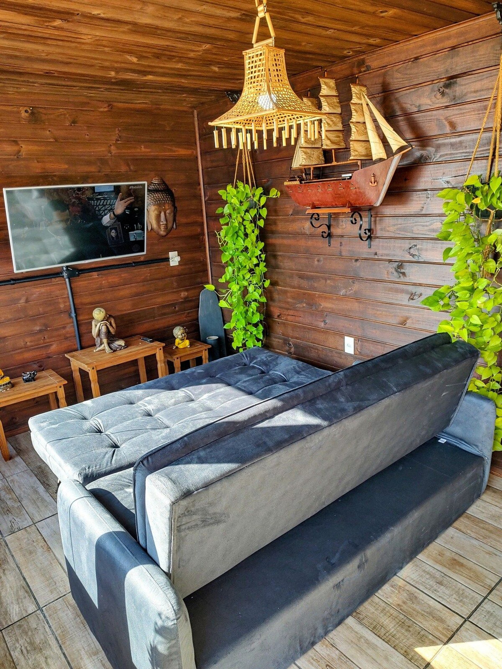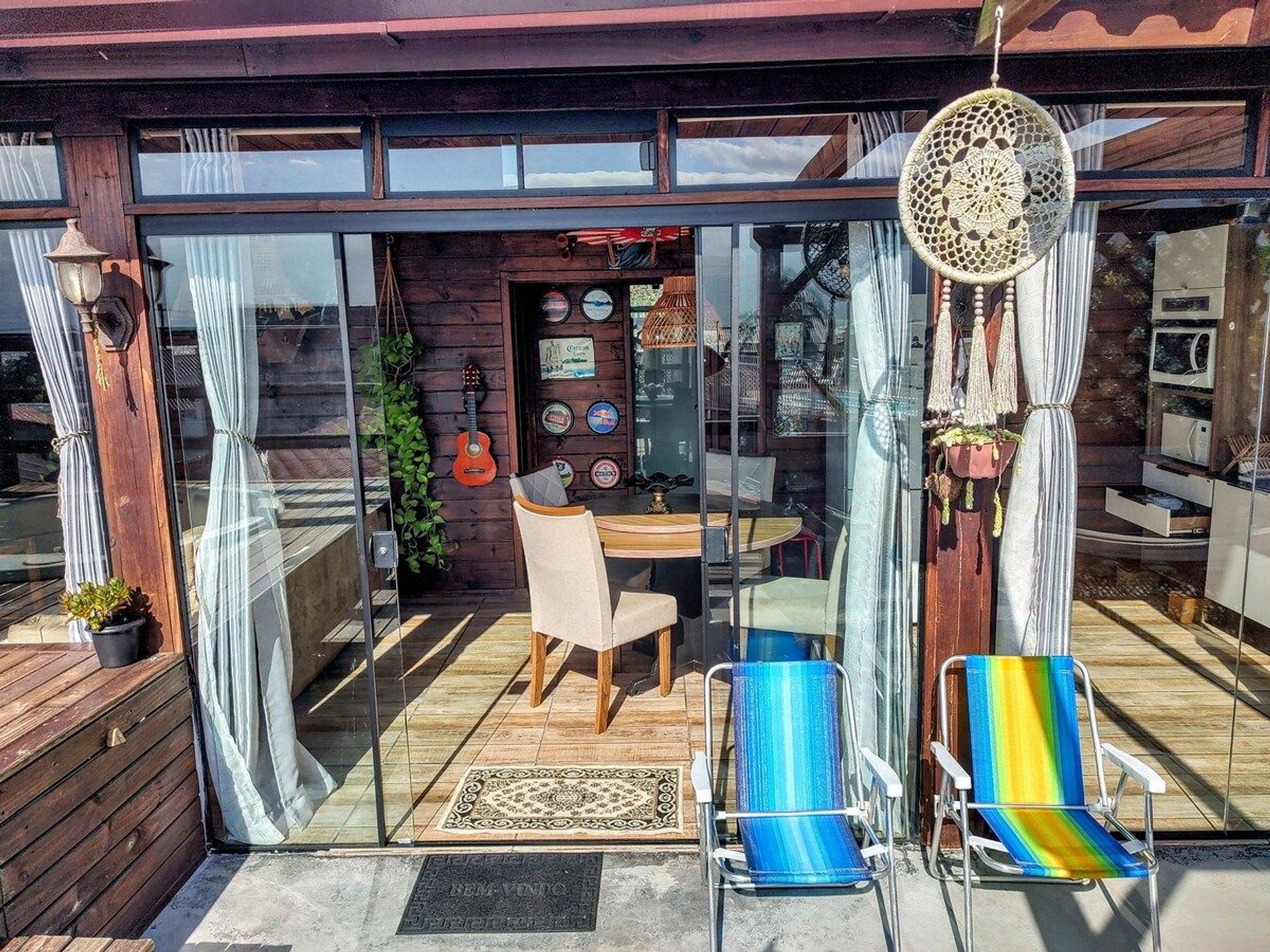 Essa charmosa residência é a realização de um grande sonho: criar um refúgio, aconchegante e harmonioso numa "pequena vila", em um dos bairros mais tradicionais e açorianos da Ilha da Magia, o Ribeirão da Ilha.