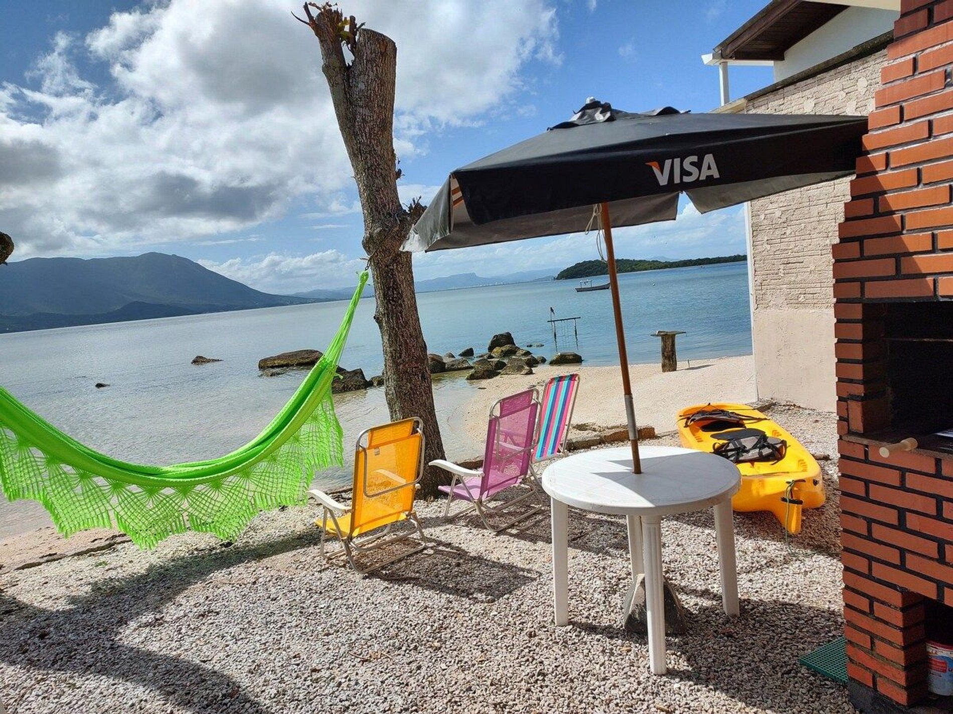Essa é uma residência aconchegante e arejada, com a peculiaridade de se ter uma pequena praia praticamente particular como quintal, em um dos bairros mais tradicionais e açorianos da Ilha da Magia. Casa 100% pé na areia com uma vista incrível e especial, para o mar, as montanhas e o pôr do sol.
