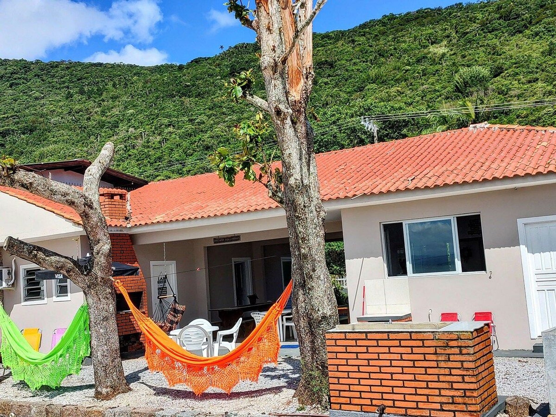 Sabe aquele lugar gostoso, onde você escuta o barulho dos pássaros e sente a brisa do mar? Aquele lugar arejado, com pouco movimento e que transpira tranquilidade? É tudo o que você vai encontrar nessa charmosa residência . Uma casa com acomodações ótimas, bem organizadas e limpas, lugar para ficar tranquilo e relaxar. Em frente a uma prainha linda, com vista para o mar, as montanhas e o pôr do sol, o mais lindo do sul da ilha..