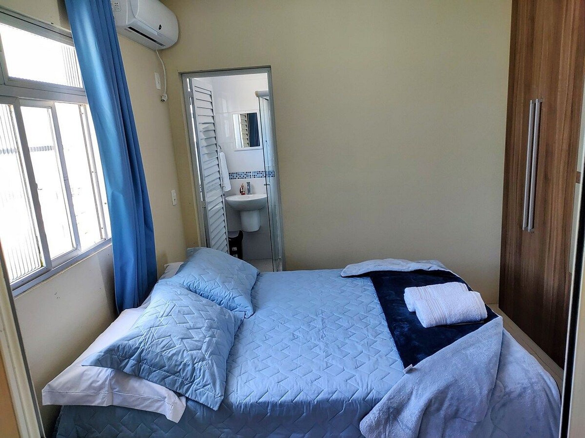 Quatro dormitórios, sendo 02 suítes com ar condicionados. Todos quartos com cortinas com blackouts. 3 banheiros no total.