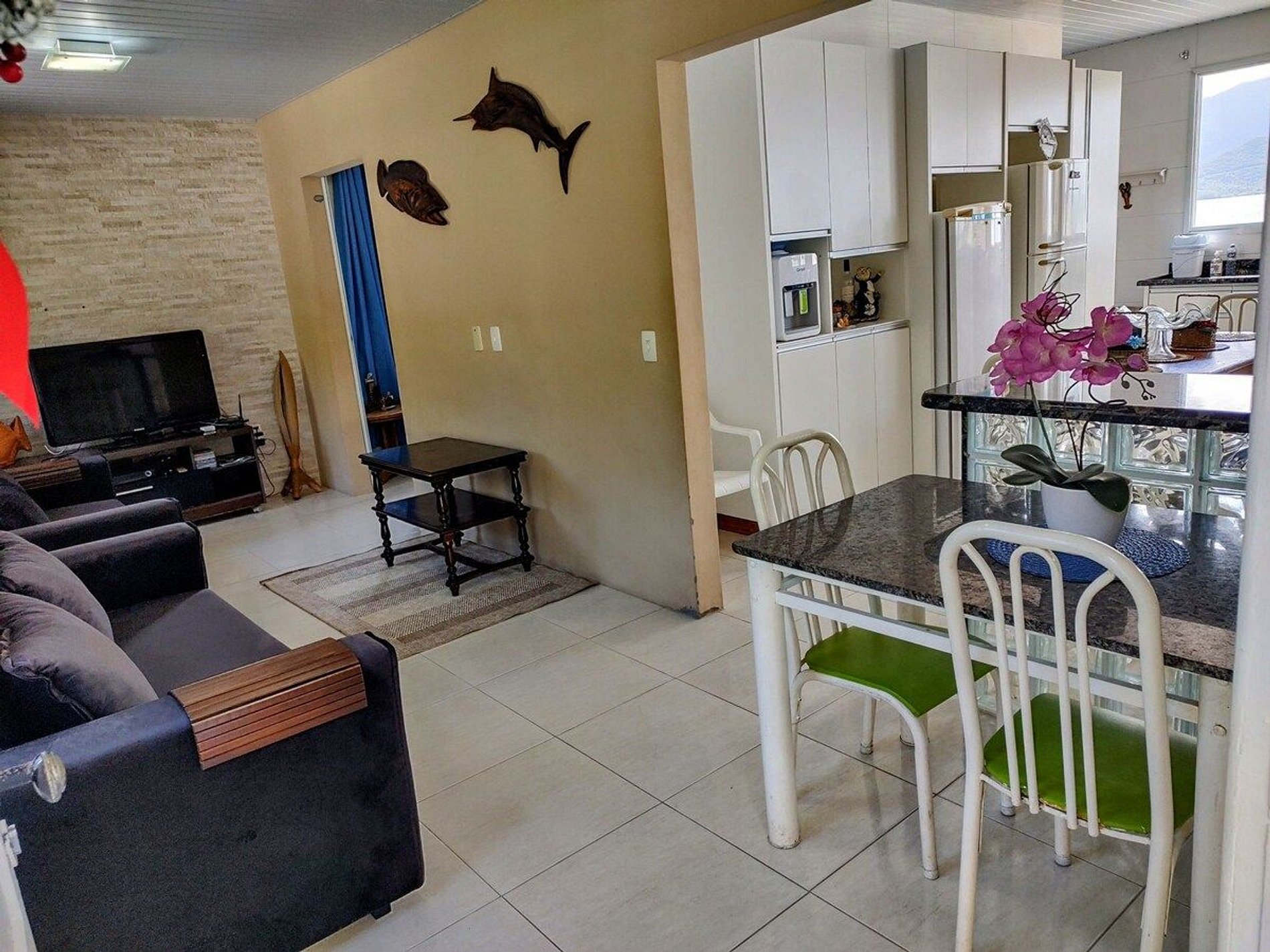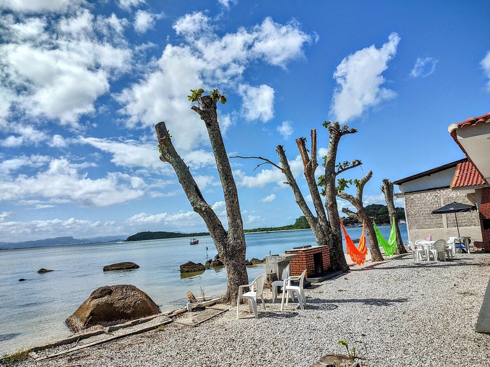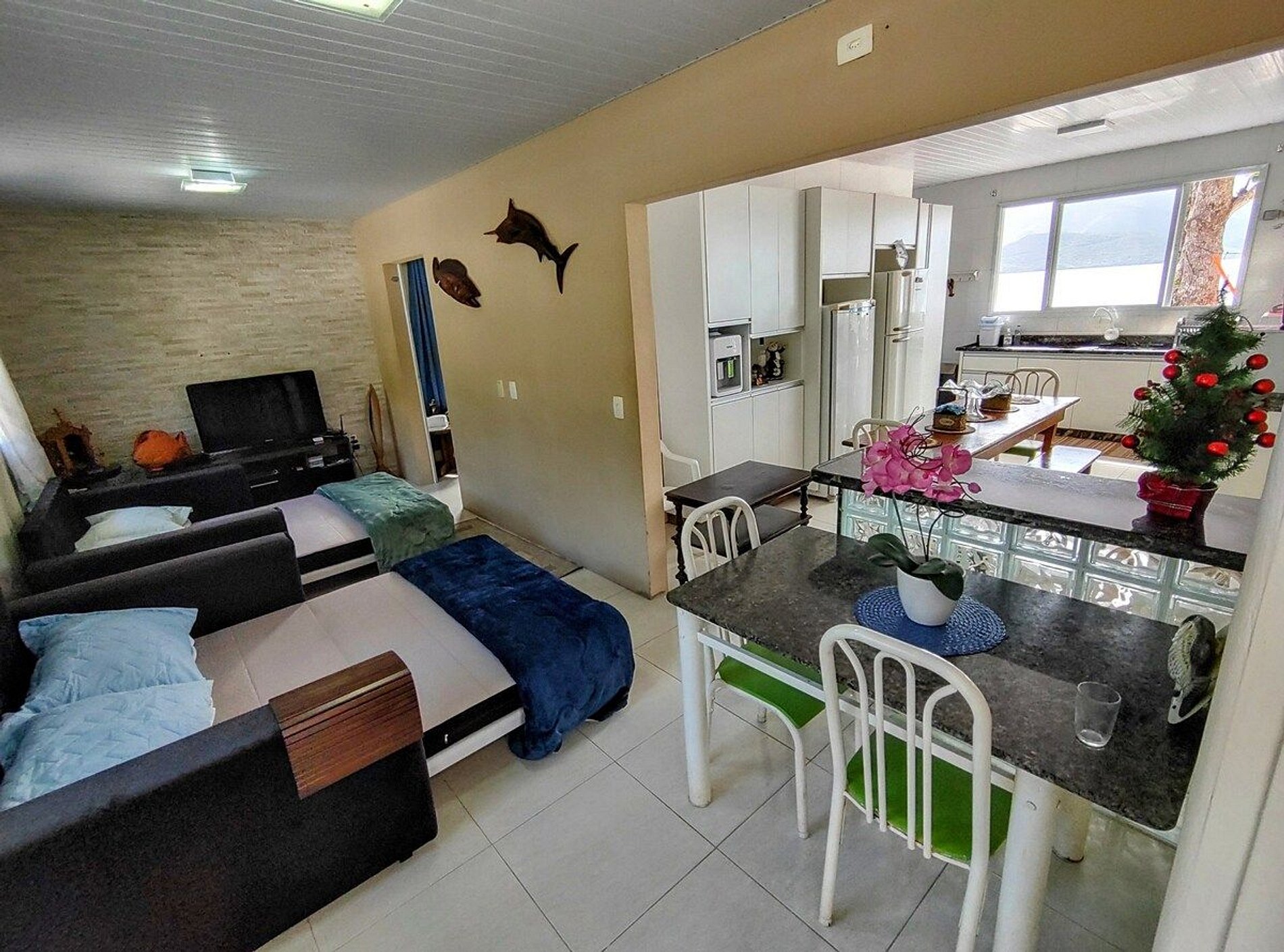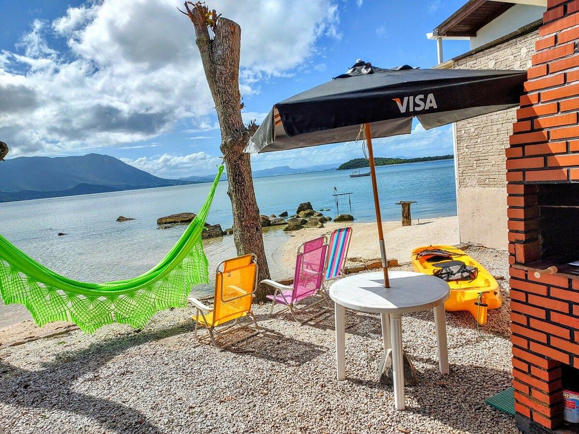 Essa é uma residência aconchegante e arejada, com a peculiaridade de se ter uma pequena praia praticamente particular como quintal, em um dos bairros mais tradicionais e açorianos da Ilha da Magia. Casa 100% pé na areia com uma vista incrível e especial, para o mar, as montanhas e o pôr do sol.
