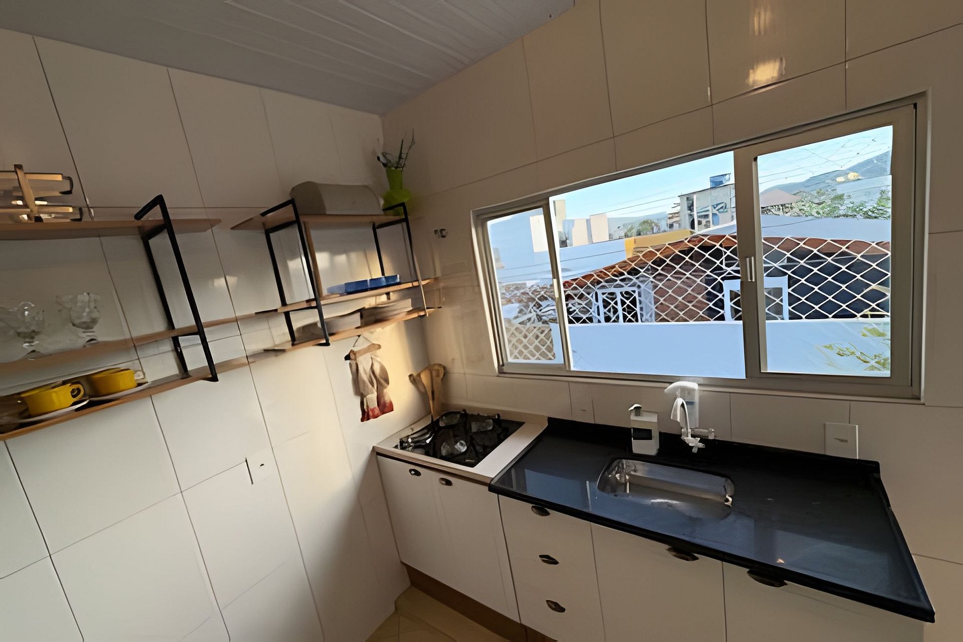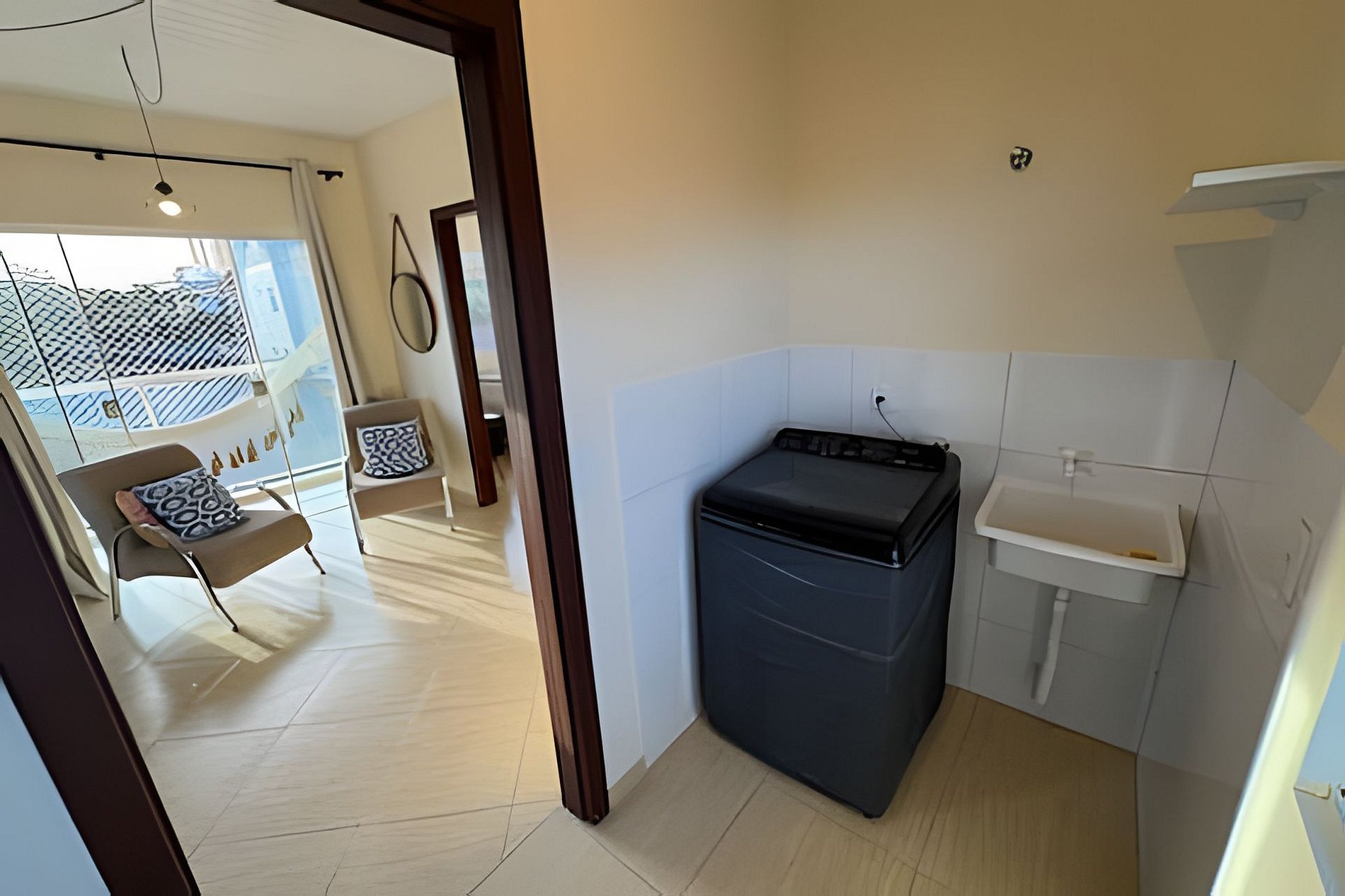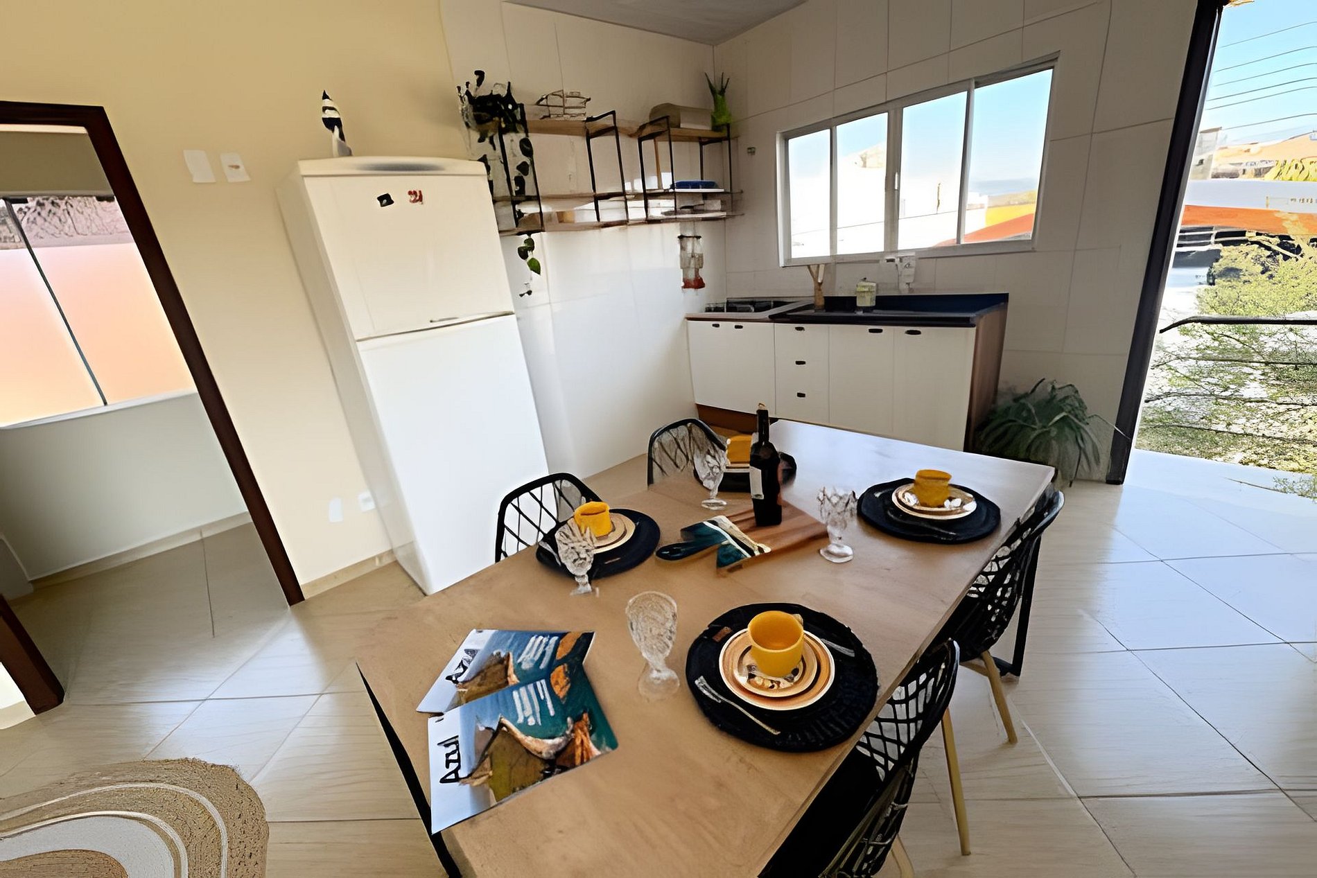 01 banheiro completo, Cozinha equipada com airfryer, micro-ondas, geladeira com freezer, utensílios de cozinha, churrasqueira portátil e mais