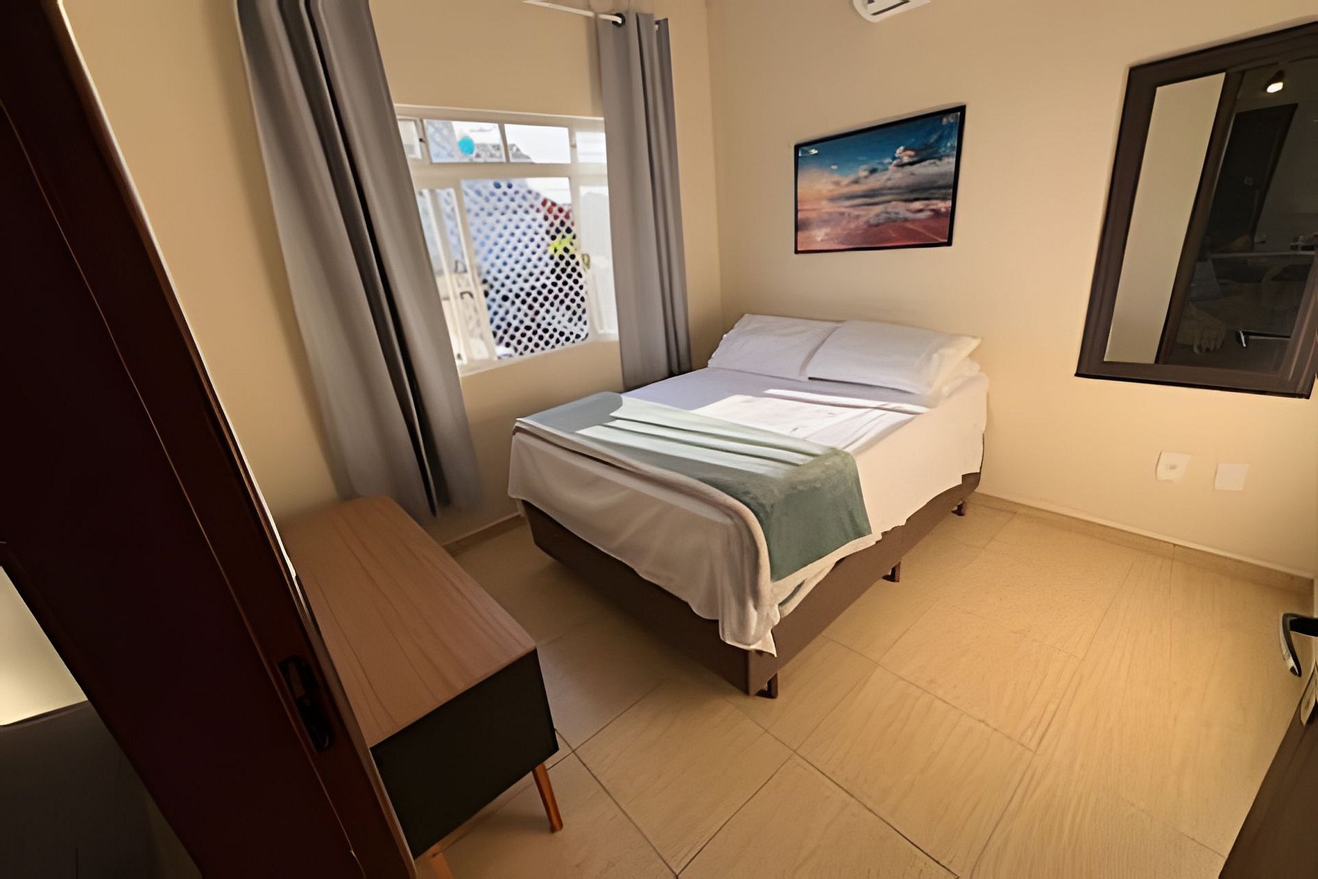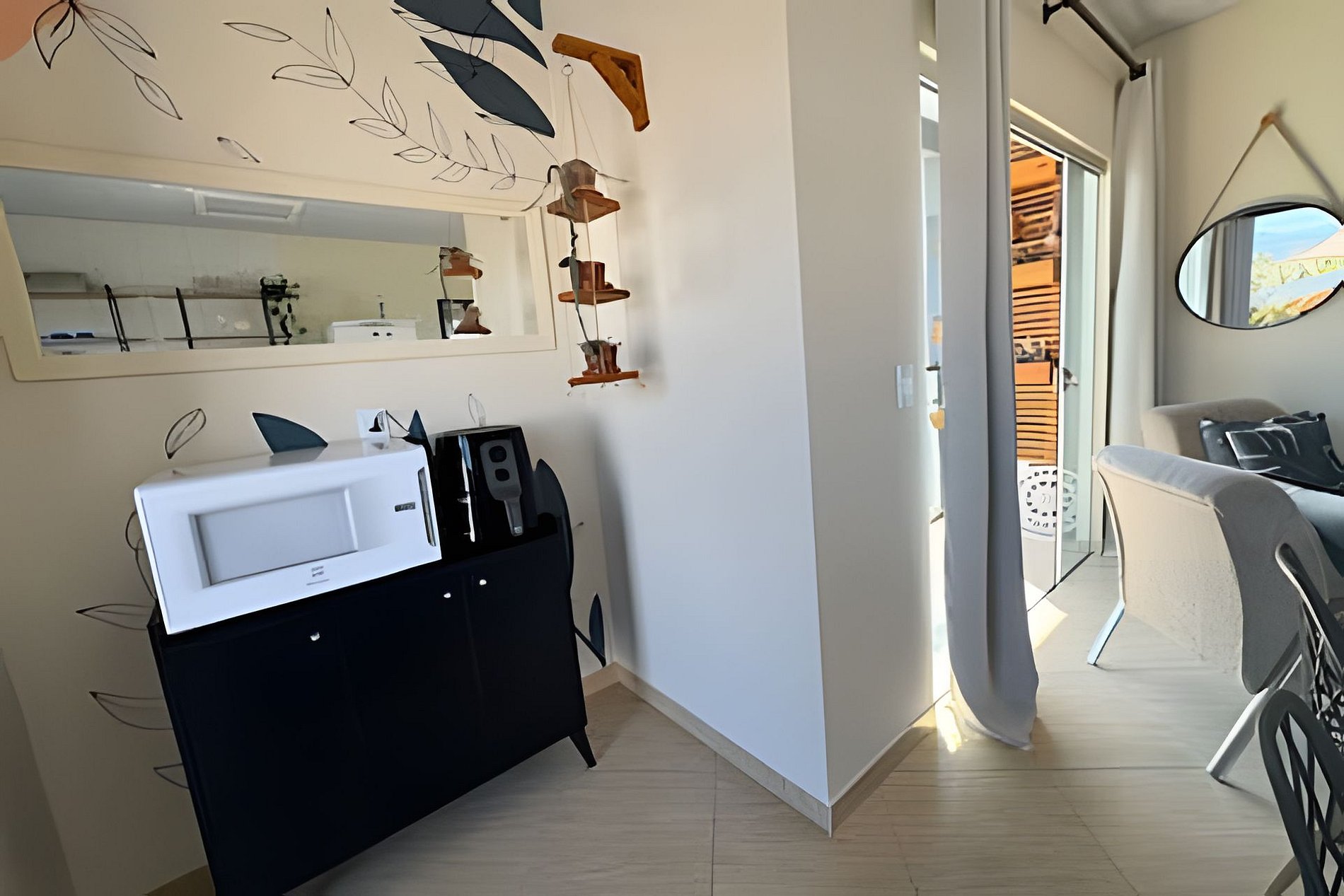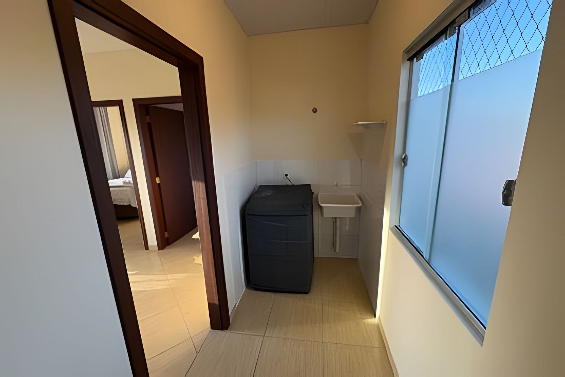01 banheiro completo, Cozinha equipada com airfryer, micro-ondas, geladeira com freezer, utensílios de cozinha, churrasqueira portátil e mais