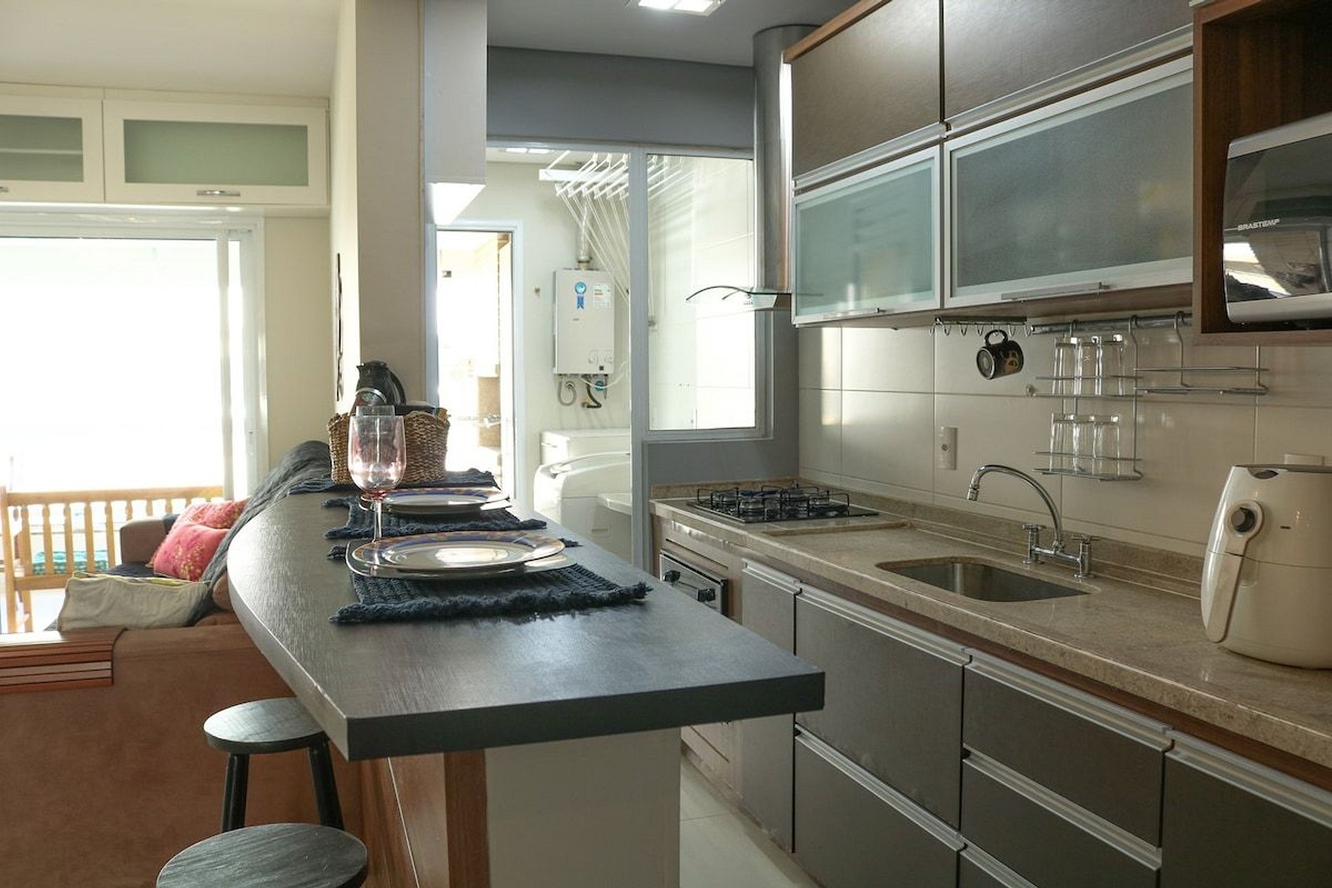 - Cozinha equipada com diversos utensílios e eletrodomésticos