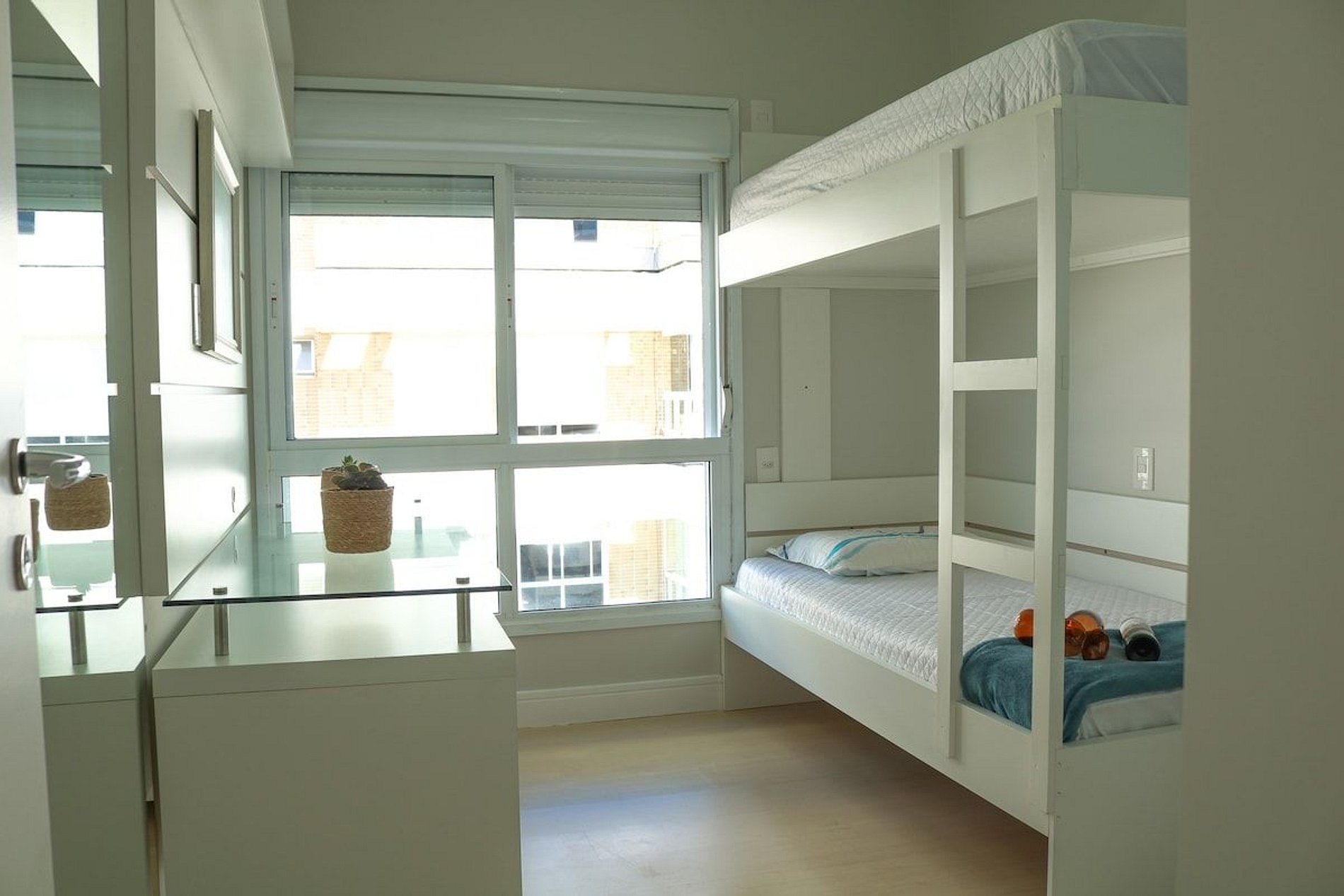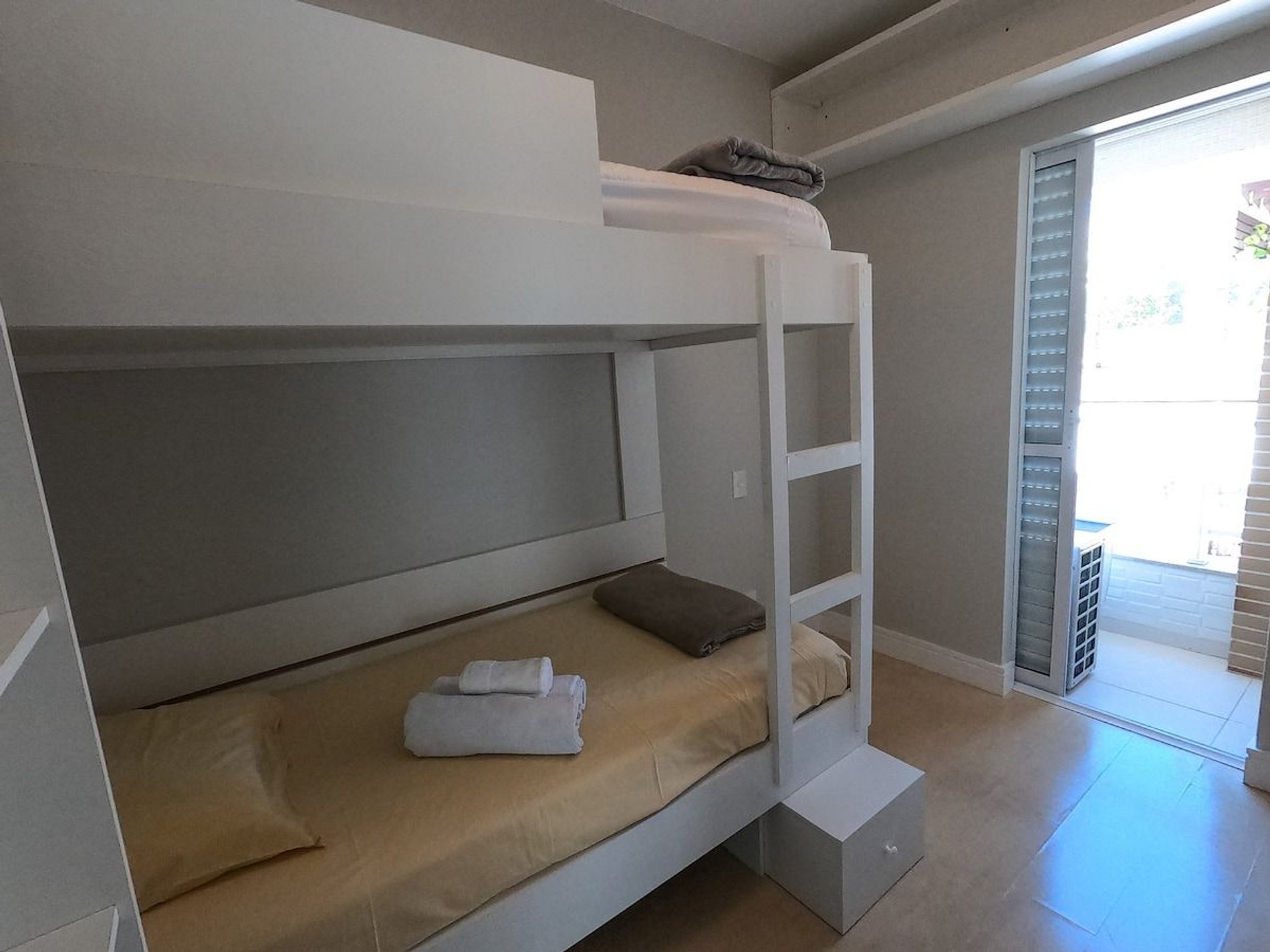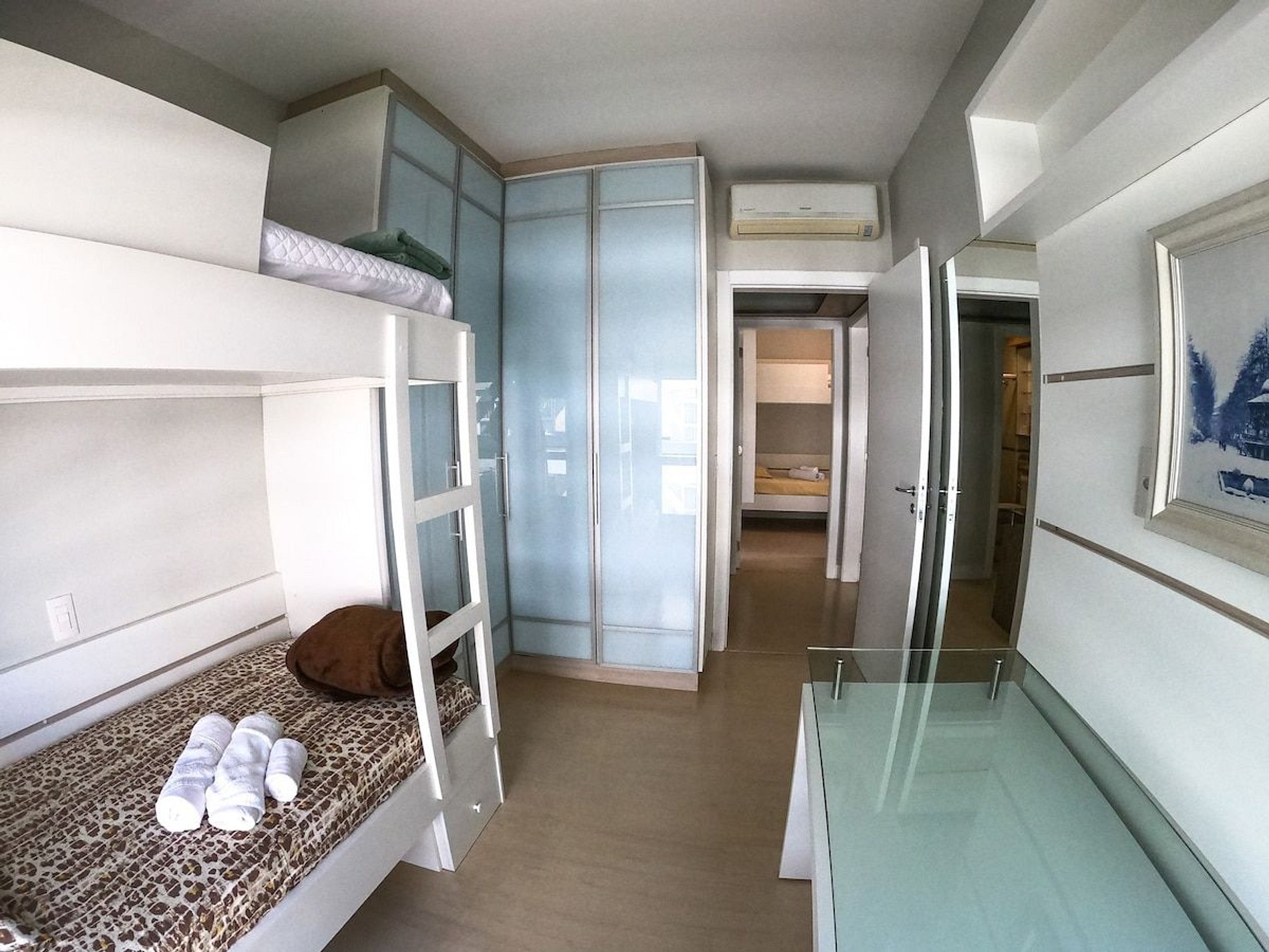 A suíte principal é equipada com uma cama queen bem confortável e os outros dois quartos tem beliches* ambos com ar condicionados silenciosos, para garantir o máximo de conforto.