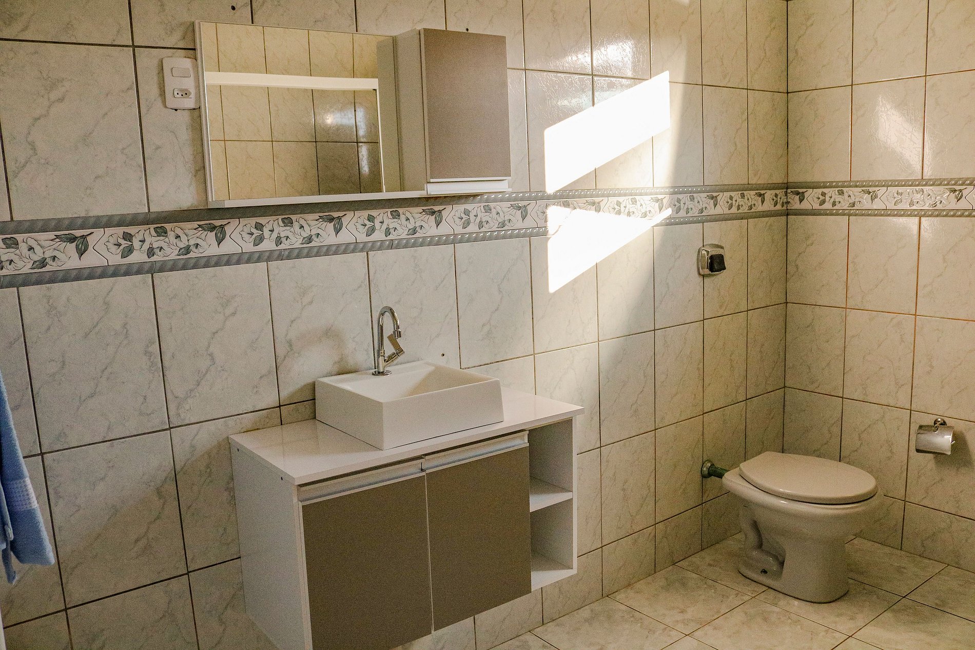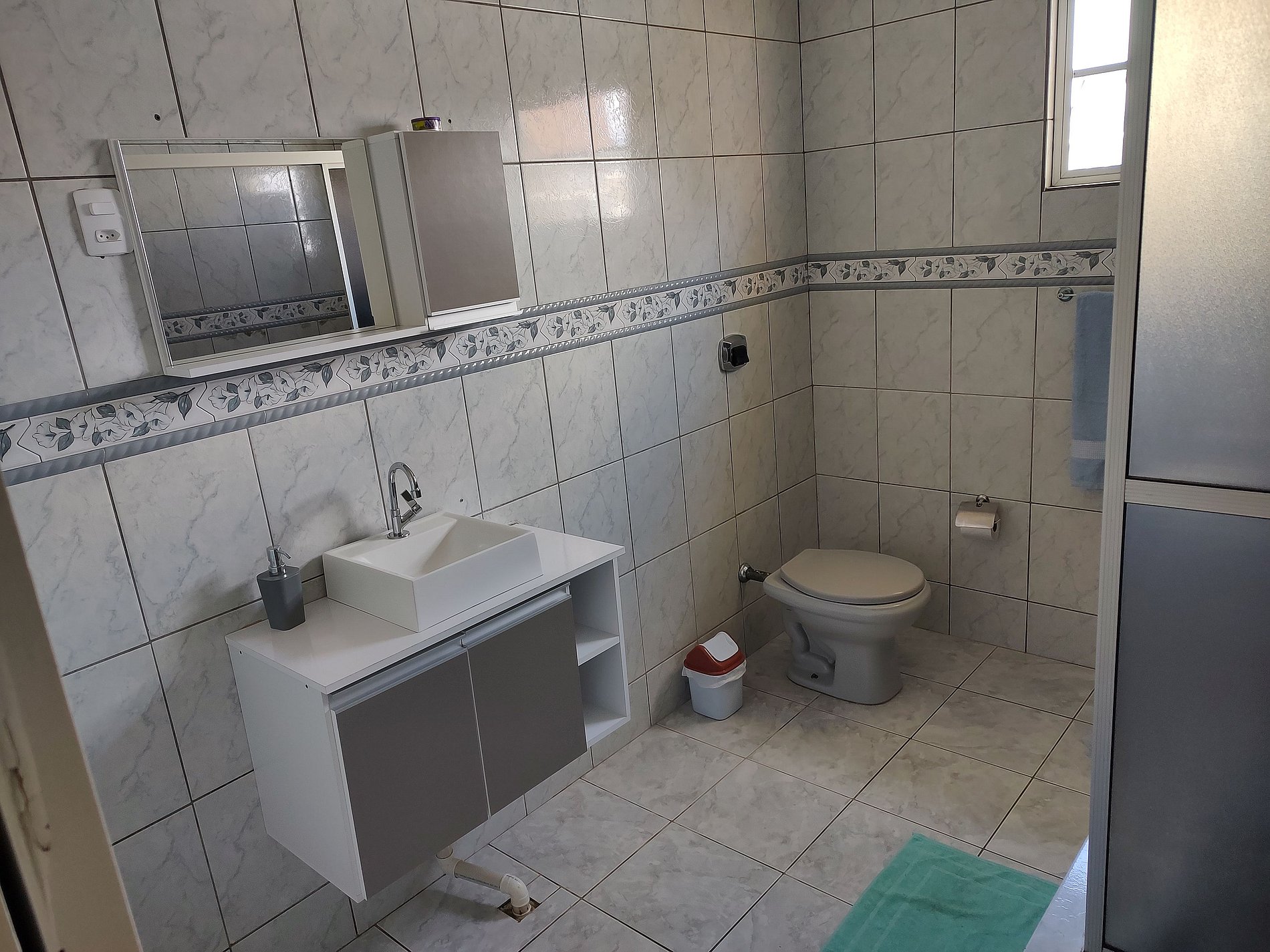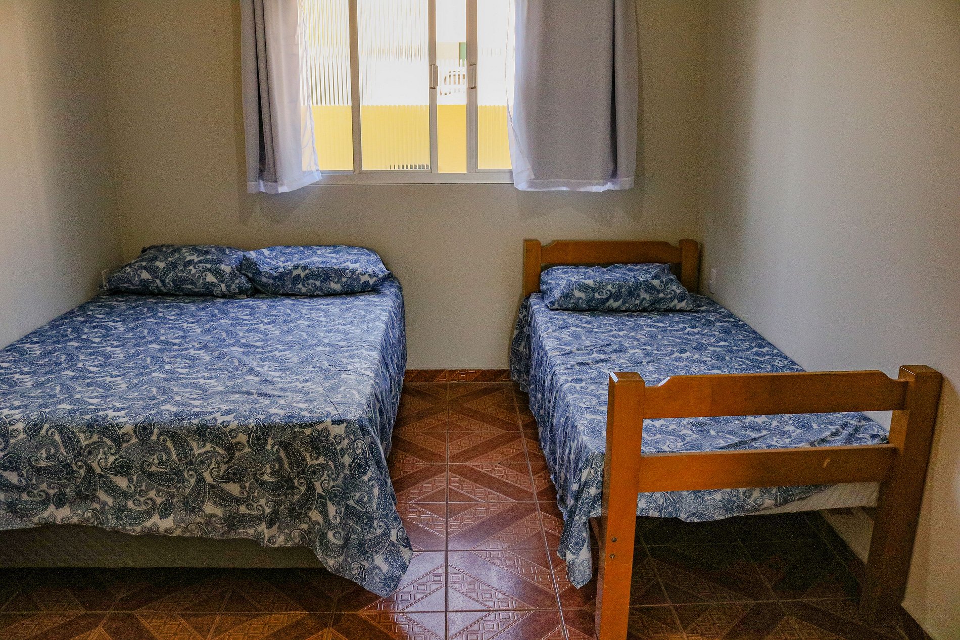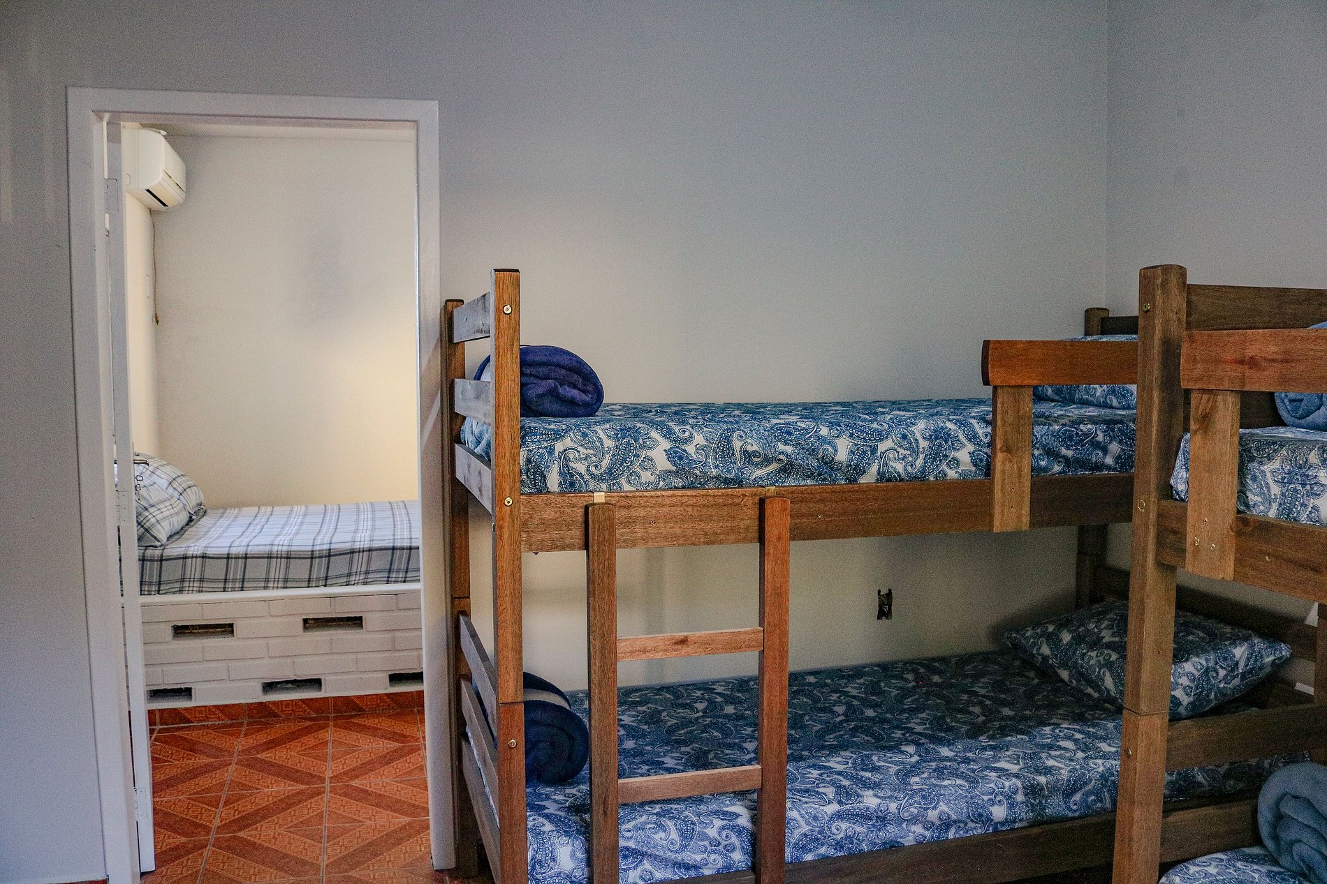 Além disso, oferece uma área gourmet com churrasqueira externa à propriedade. São quatro dormitórios, sendo três quartos comuns e uma suíte, sendo dois deles equipados com ar condicionado, cortinas blackout, além de um banheiro de uso coletivo.