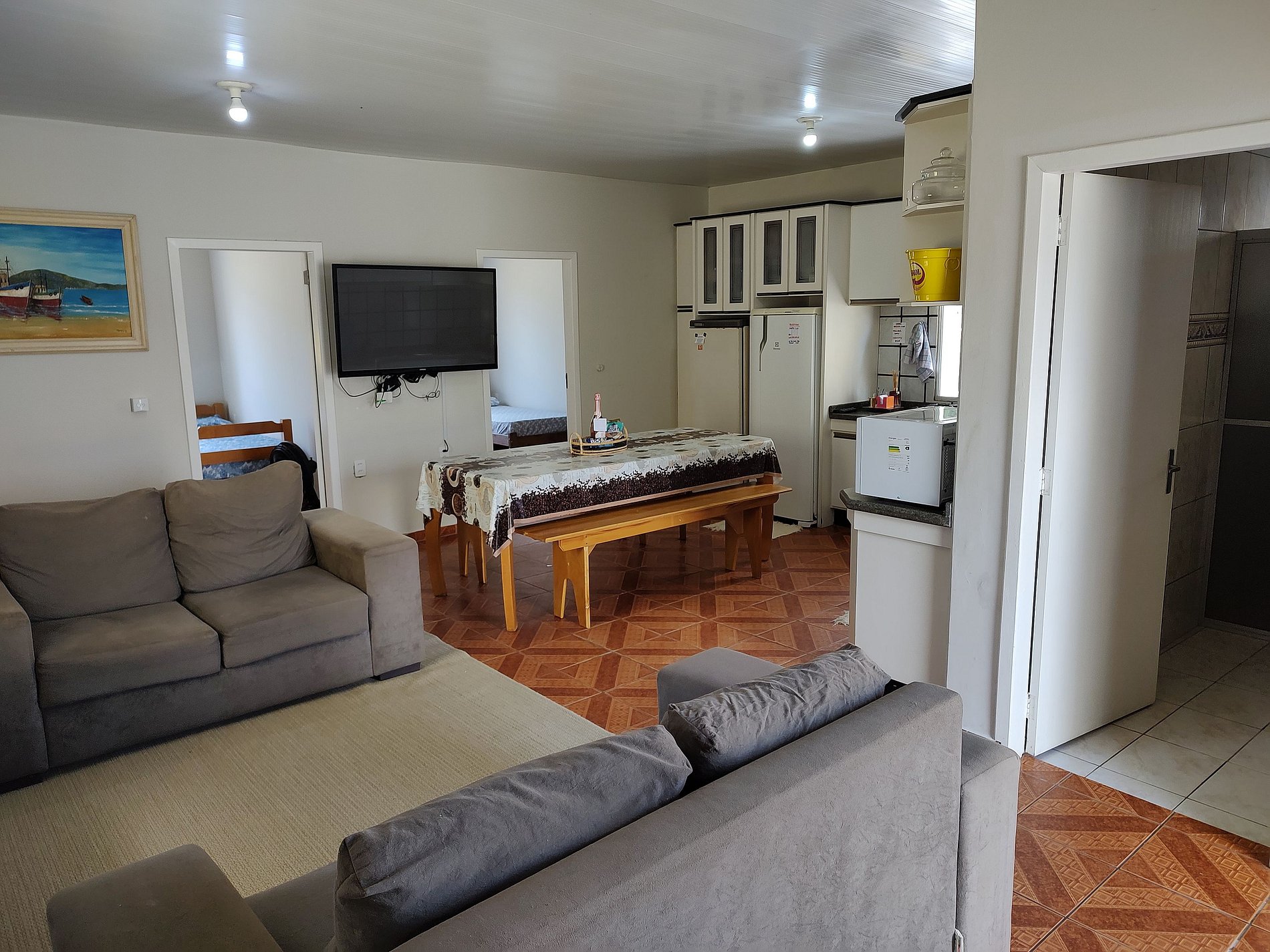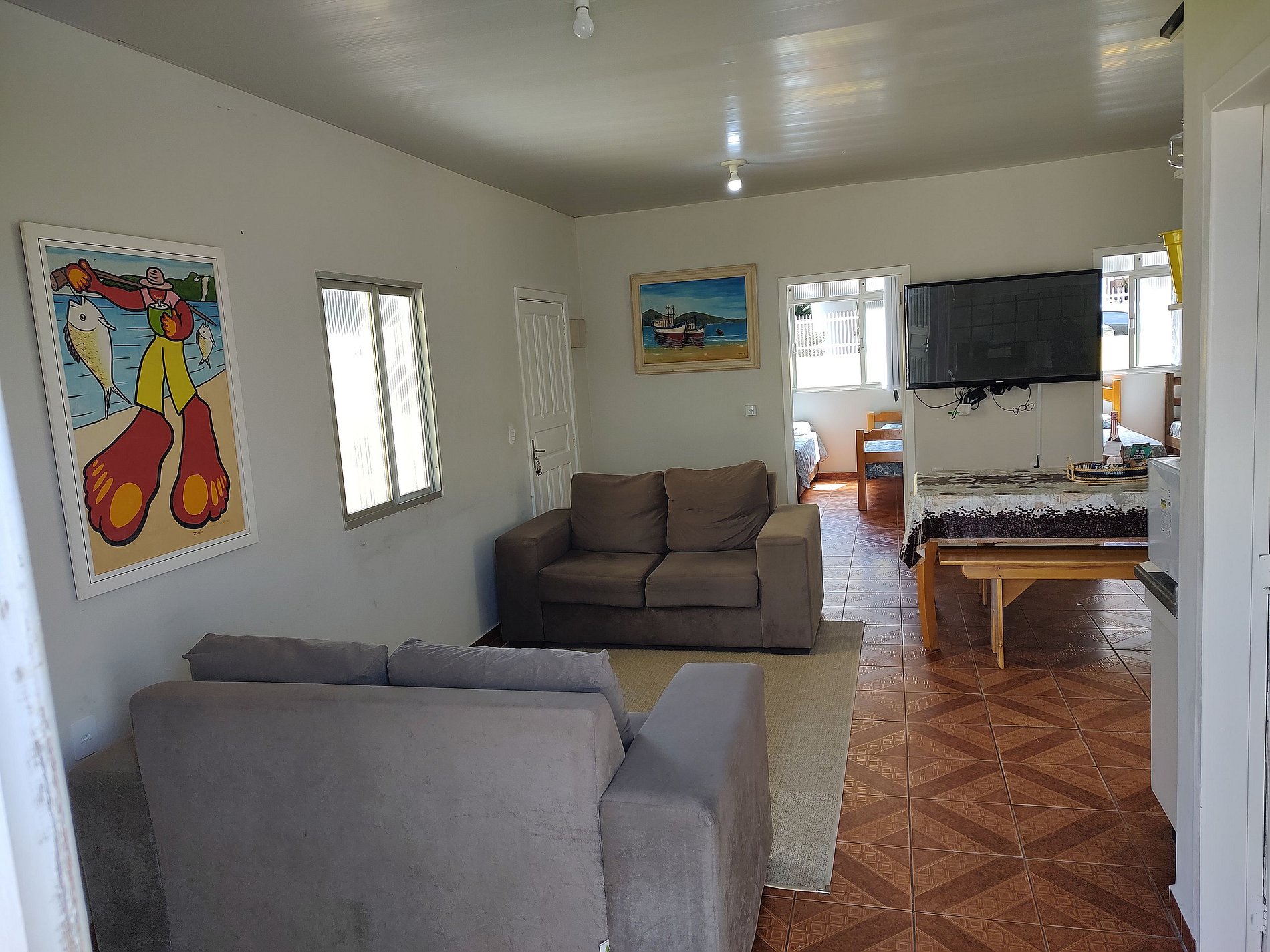 Esta residência é um verdadeiro refúgio para uma grande família ou grupo de amigos. É super aconchegante e arejada, com a peculiaridade de estar situada à beira-mar e possuir uma piscina recém-construída com vista espetacular para o mar e o pôr do sol sobre o Morro do Cambirela, em um dos bairros mais tradicionais e de herança açoriana da Ilha da Magia.