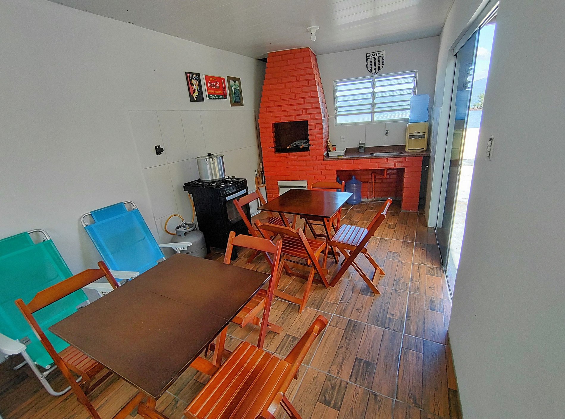 Esta casa é banhada por bastante luz natural e está equipada com tudo o que você precisa para desfrutar de ótimas refeições em grupo: talheres, utensílios de churrasco, jogos de panelas e frigideiras, xícaras para café, jogos de copos e pratos, liquidificador, cafeteira, coador e eletrodomésticos.